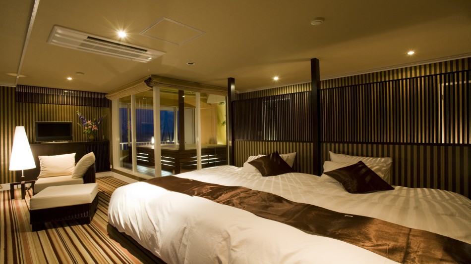 写真:露天付客室もあり。客室専用露天では源泉かけ流しの湯をひとりじめ